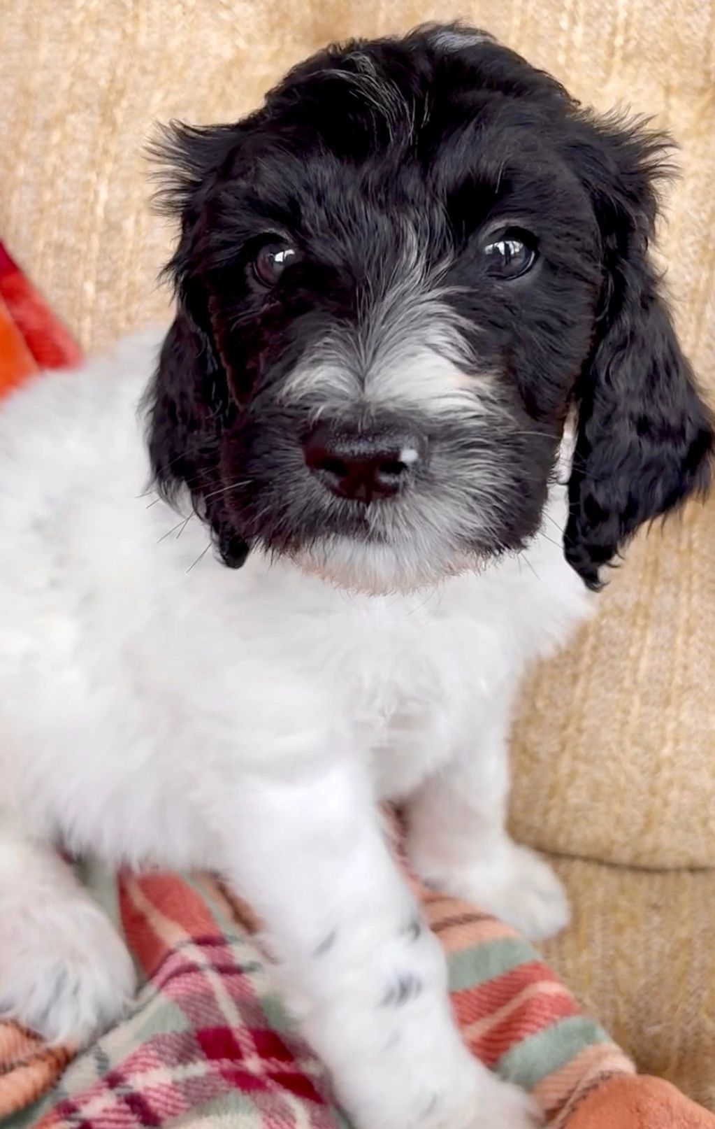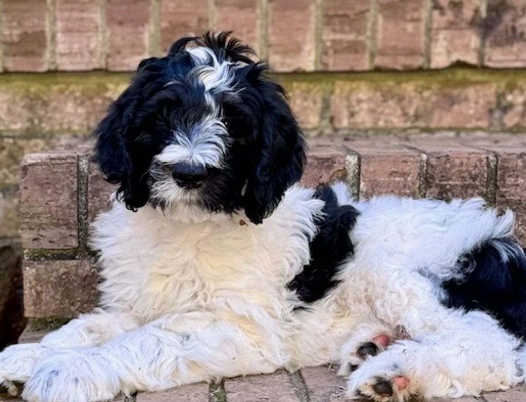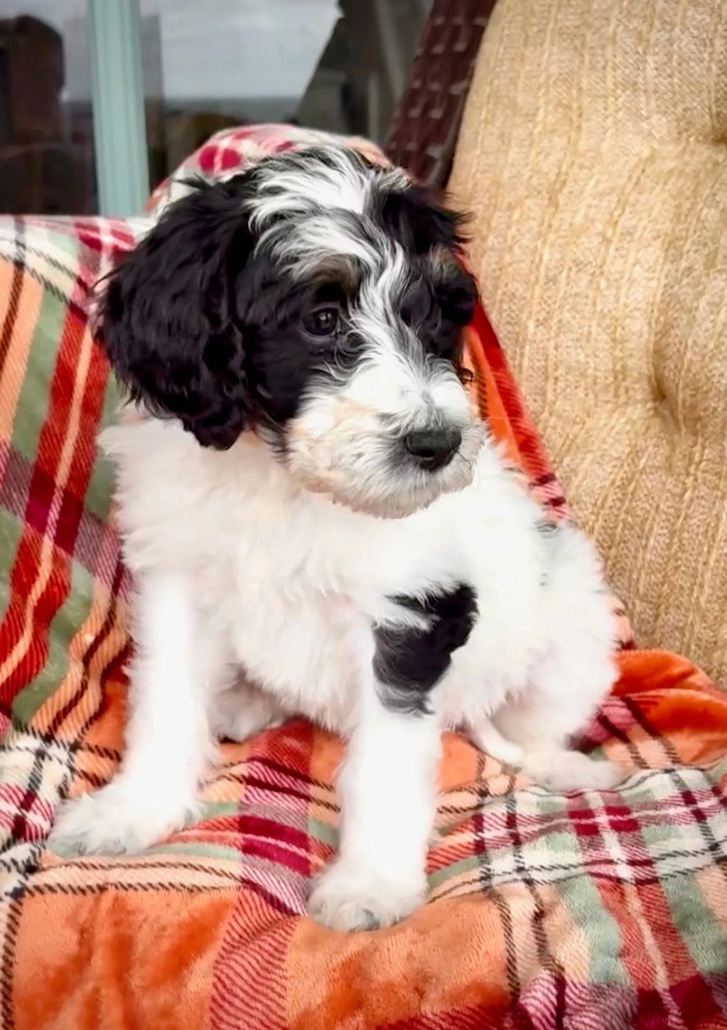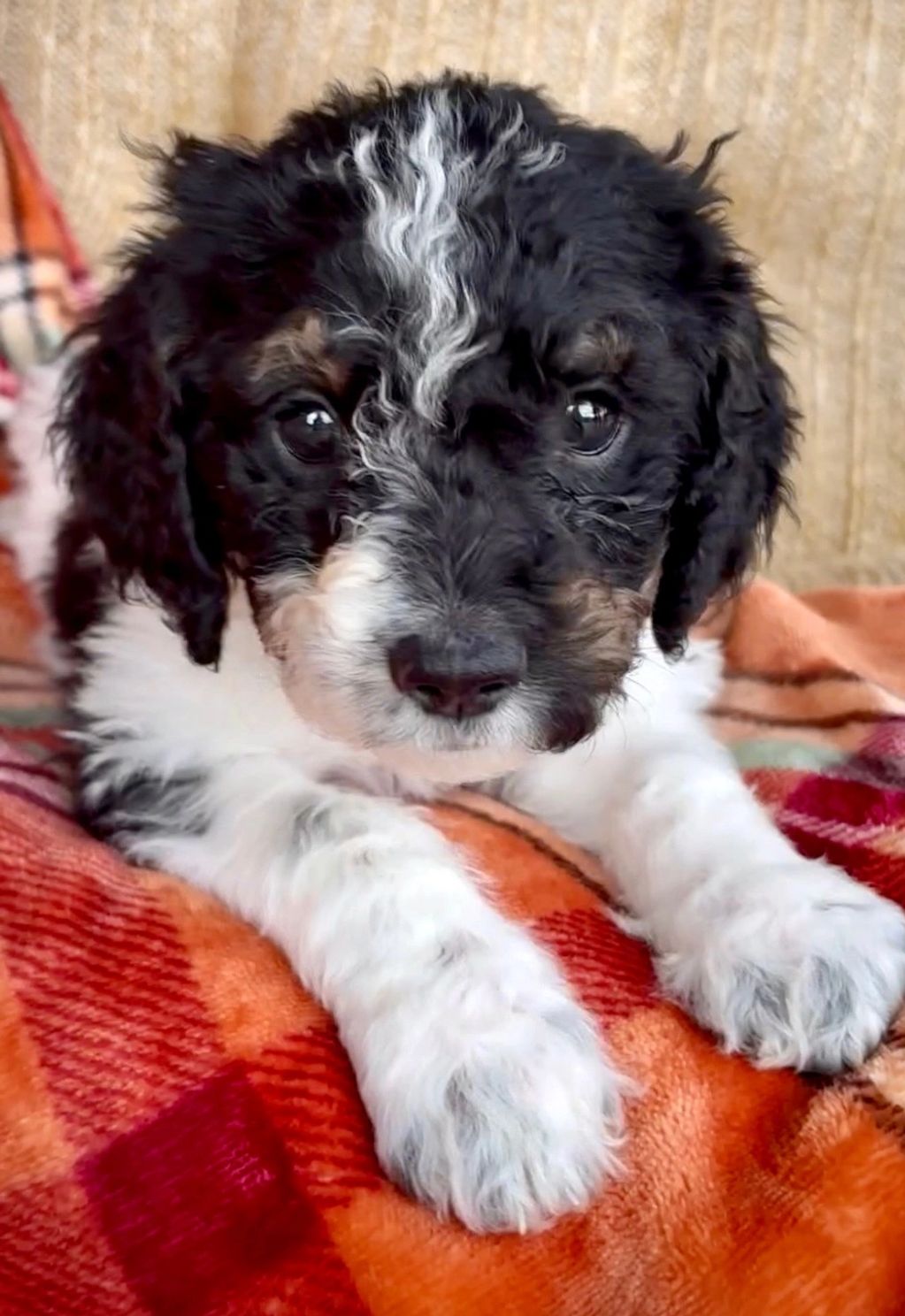 York is a sweet tri-color parti f1b bernedoodle. He is incredibly calm and loves to cuddle.